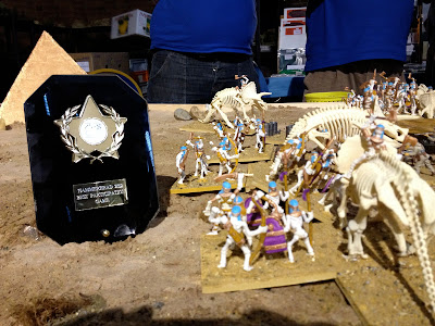 And that was that, barring the awards. I'm struggling to remember all of them: Keith Tait's gorgeous Sassanid army deservedly won Best Painting. AndyB upheld the club's honour by winning Best Sportsman, both Grahame and I won a raffle prize (to my relief. I